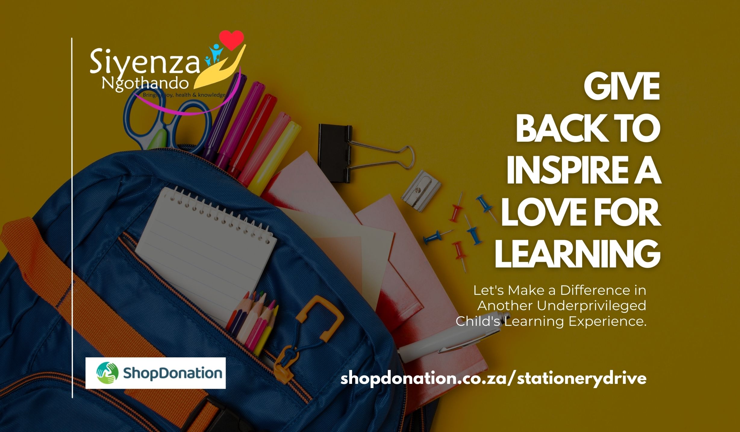 With all that is happening in our world today, education remains the most important key in life to help one advance outside of their circumstances. Through the Stationery Drive, we create packages to gift young children ageing between 7 and 13 years of age. The aim is encourage them too keep going, to value education and know that they have support, people rooting for them to do great. Most of the organizations we approach are for orphans or child-headed homes. Helping the less fortunate is requires a selfless act, where one reaches out beyond their own circle. At Siyenza Ngothando (Doing it with Love) we will NEVER tire of doing good!
